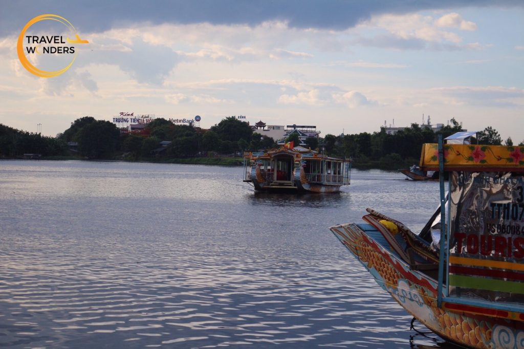 ไปต่อไม่รอแล้วจ้า… สถานที่แรกที่จะพาทุกท่านไปสร้างแลนด์มาร์ค คือ พระราชวังต้องห้าม!! ตั้งอยู่ใจกลางเมืองเว้ … ภายนอกของพระราชวังโอบล้อมด้วยคูน้ำและกำแพงสูงใหญ่ เป็นวิธีการป้องกันข้าศึกที่ใช้กันมาหลายยุคหลายสมัยในอดีต และอีก 1 กิจกรรมที่เมื่อไปเมืองเว้แล้วต้องห้ามพลาด คือ ล่องเรือแม่น้ำหอม …. ดูดดื่มบรรยากาศริมสองฝั่งแม่น้ำหอม เพลิดเพลินไปกับเสียงเพลงอันไพเราะจากสาวๆ เวียดนาม ที่จะมามอบความสุขให้ทุกท่านตลอดการล่องเรือ