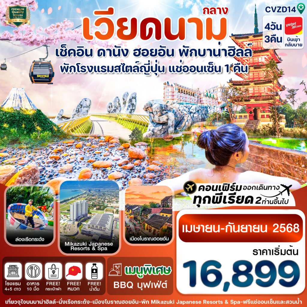 เวียดนาม กลาง เช็คอิน ดานัง ฮอยอัน พักบาน่าฮิลล์