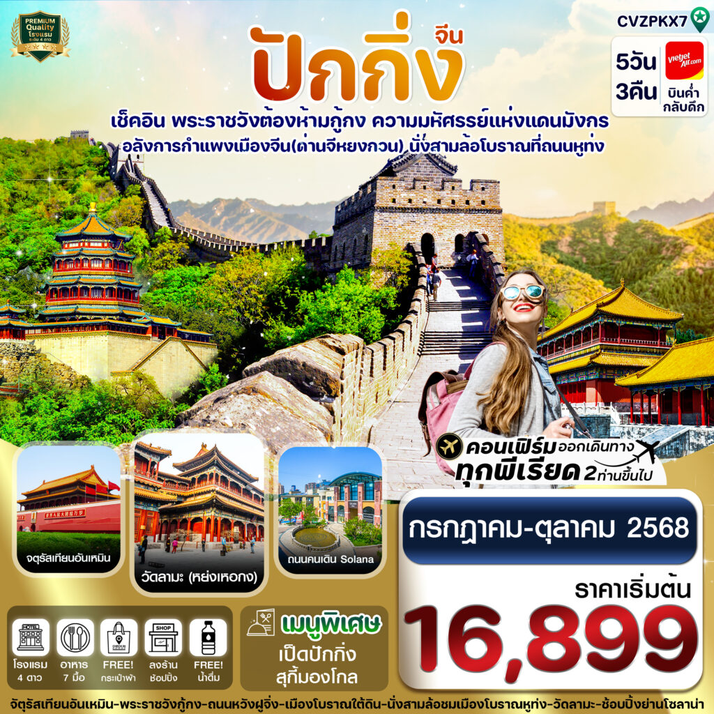 อลังการกำแพงเมืองจีน นั่งสามล้อโบราณที่ถนนหูท่ง เมนูพิเศษ เป็กปักกิ่ง สุกี้มองโกล