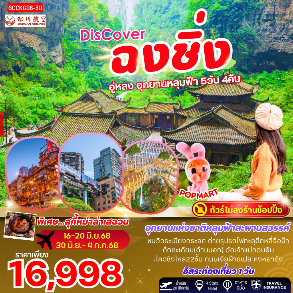 Dis Cover ฉงชิ่ง อู่หลง อุทยานหลุมฟ้า 5 วัน 4 คืน