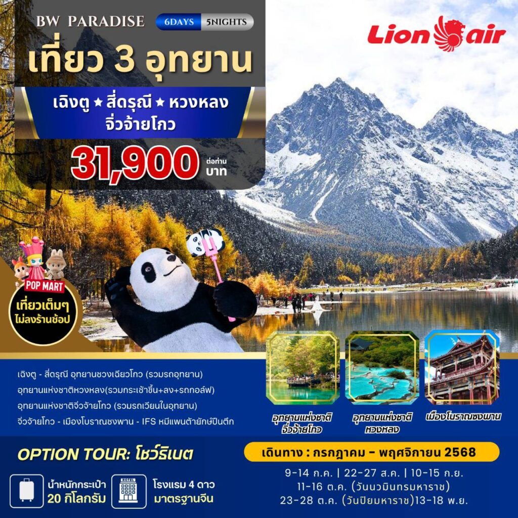 เฉิงตู สี่ดรุณี อุทยานชวงเฉียวโกว อุทยานแห่งชาติหวงหลง (รวมกระเช้าขึ้น+รถกอลฺฟ)