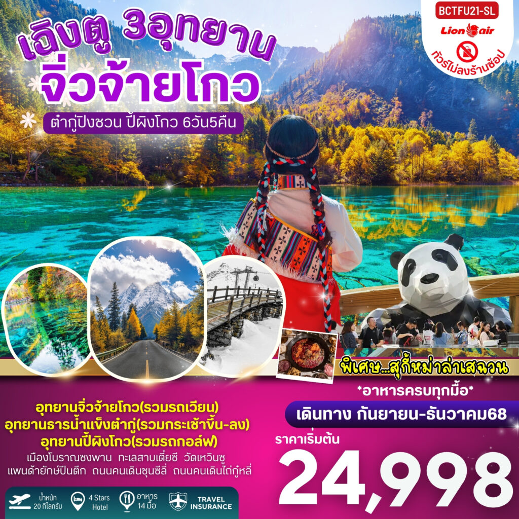 เฉิงตู 3อุทยาน จิ่วจ้ายโกว ต๋ากู่ปิงซาน ปี้ผิงโกว 6วัน 5คืน
