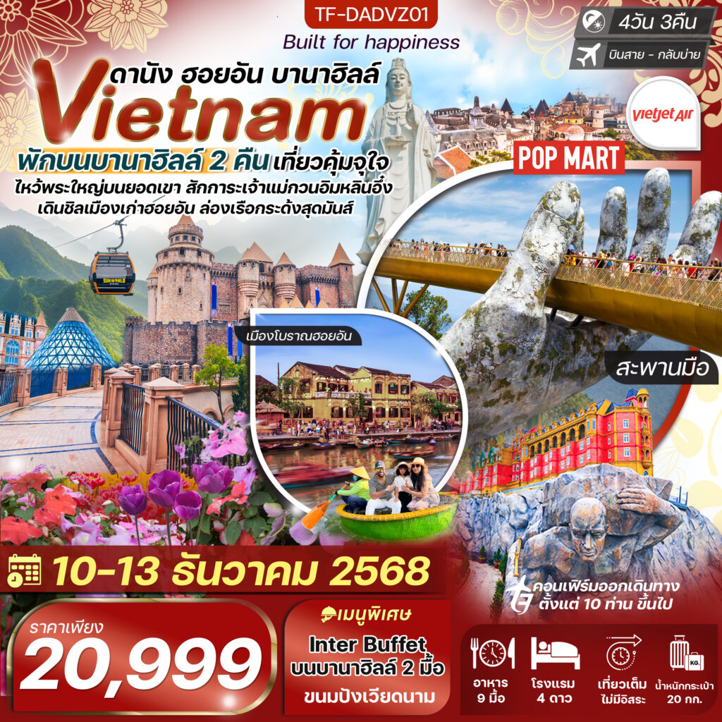 ดานัง ฮอยอัน บานาฮิลล์ Vietnam พักบนบานาฮิลล์ 2 คืน เที่ยวคุ้มจุใจ
