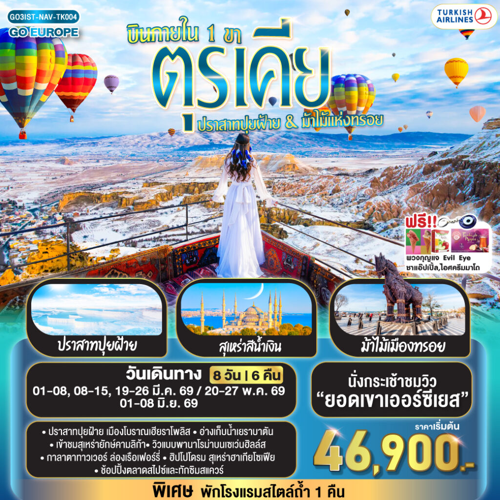 บินภายใน 1 ขา ตุรเคีย ปราสาทปุยฝ้าย & ม้าไม้แห่งทรอย