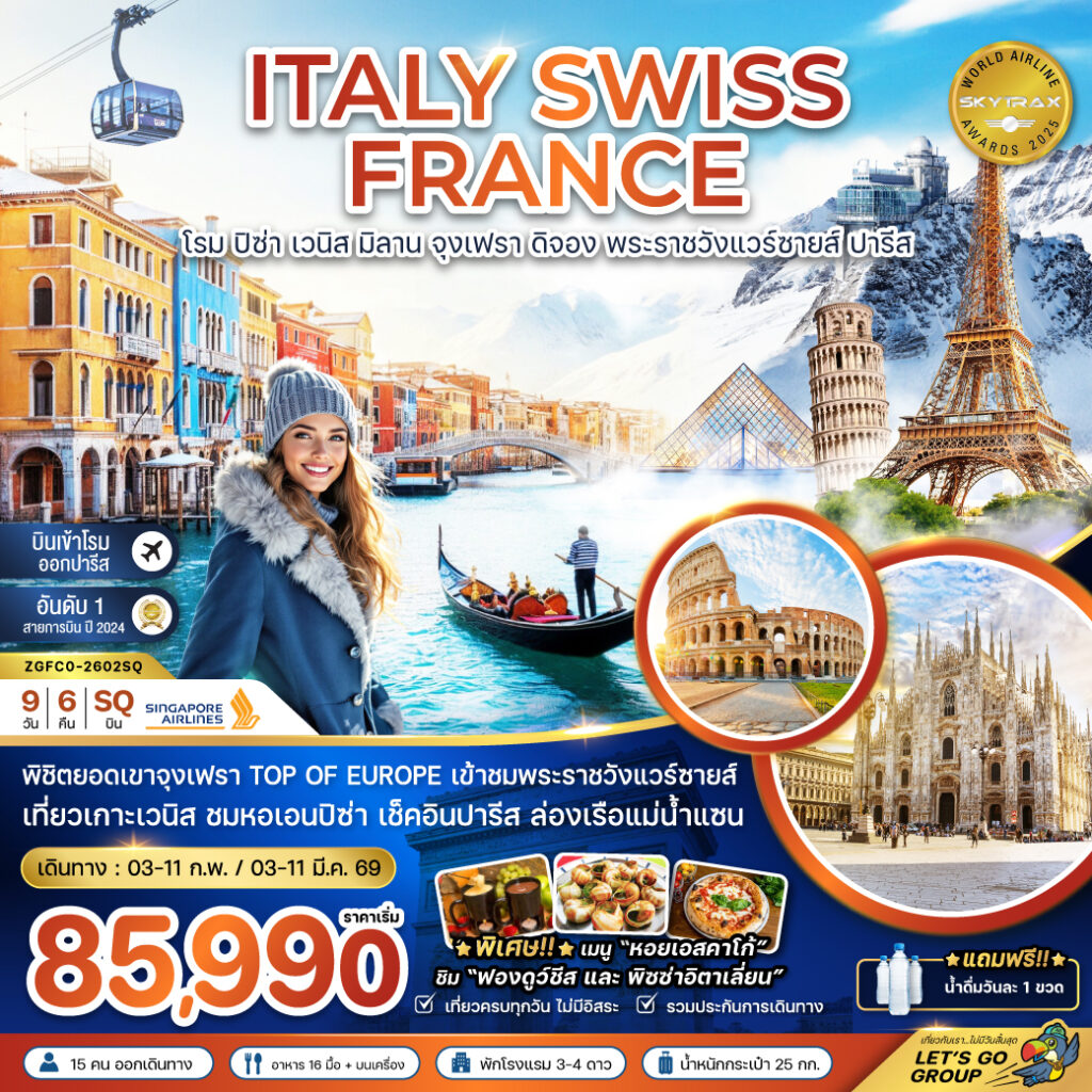 ITALY SWISS FRANCE โรม ปิซ่า เวนิส มิลาน จุงเฟรา ดิจอง พระราชวังแวร์ซายส์ ปารีส