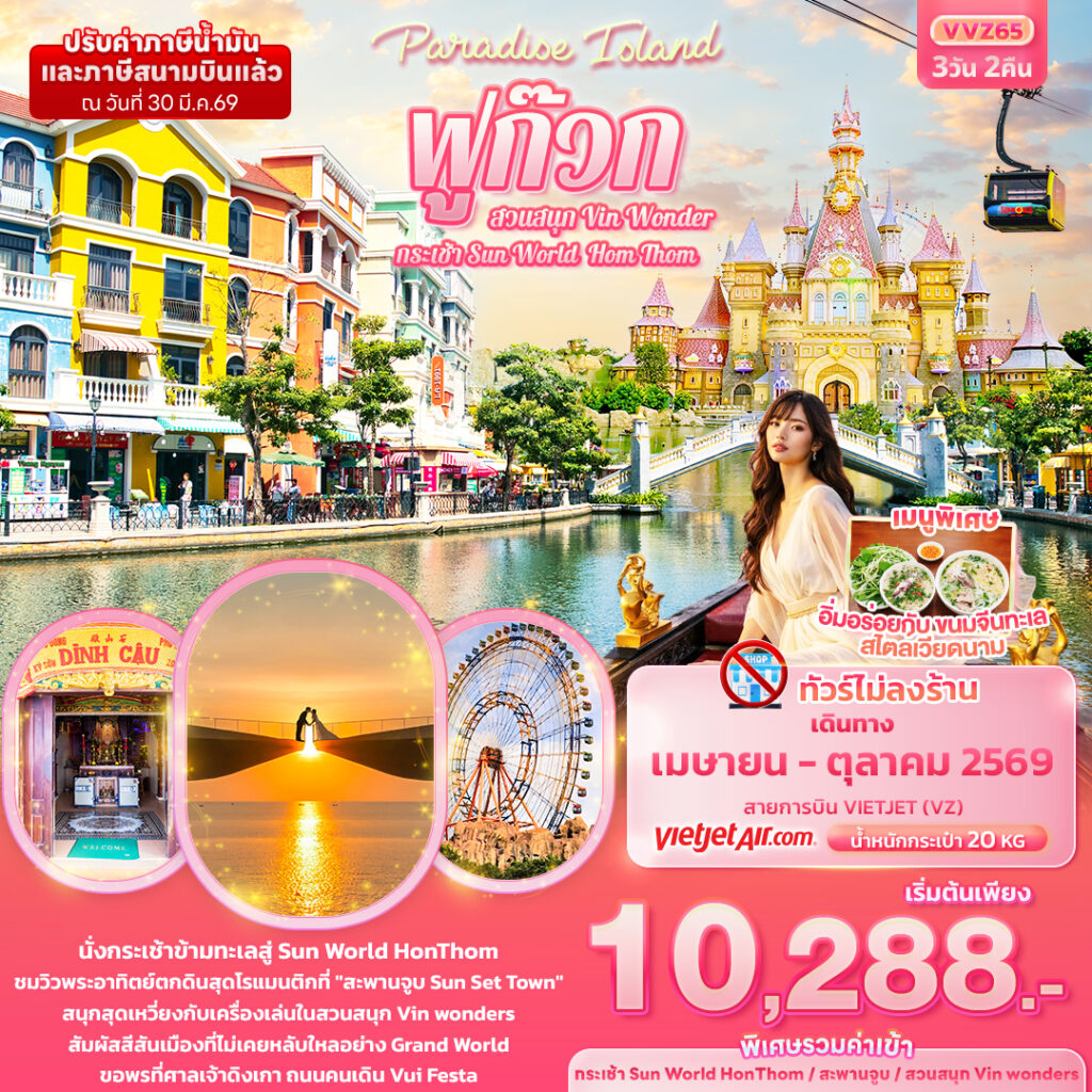 Paradise Island ฟูก๊วก สวนสนุก Vin Wonder กระเช้า Sun World Hom Thom