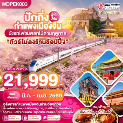 CHINA ปักกิ่ง พระราชวังต้องห้าม กำแพงเมืองจีน ซากุระ 5 วัน 3 คืน เยือนเมืองแห่งประวัติศาสตร์ ชมกำแพงเมืองจีนอันยิ่งใหญ่ สัมผัสความงามของฤดูใบไม้ผลิ ชมRead more!