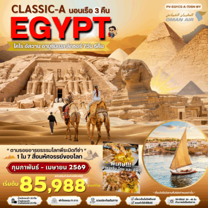 CLASSIC-A-EGYPT สัมผัสมนต์เสน่ห์แห่งลุ่มแม่น้ำไนล์ 7 วัน 5 คืน เข้าชม THE GRAND MUSEUM ที่พัก: โรงแรม 5 ดาว และเรือสำราญระดับ 5 ดาว หรือเทียบเท่า ราคาRead more!