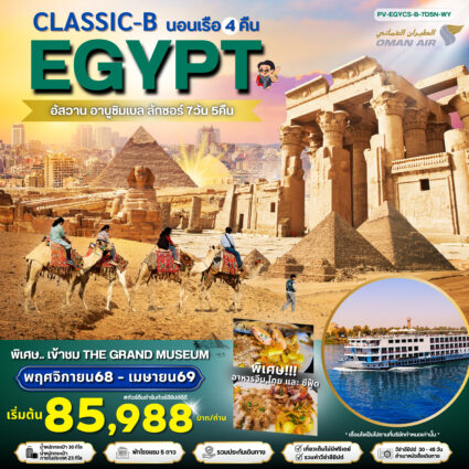 CLASSIC-B-EGYPT สัมผัสมนต์เสน่ห์แห่งลุ่มแม่น้ำไนล์ 7 วัน 5 คืน อัสวาน อาบูซิมเบล ลักซอร์ ที่พัก: โรงแรม 5 ดาว และเรือสำราญระดับ 5 ดาว หรือเทียบเท่า ราRead more!