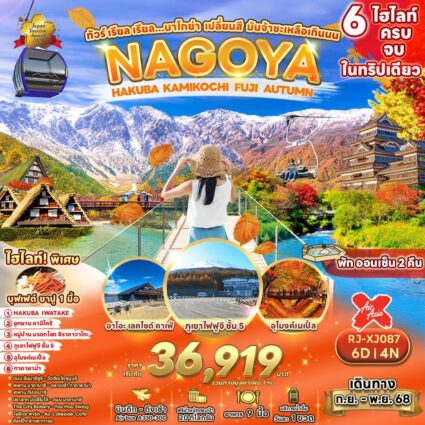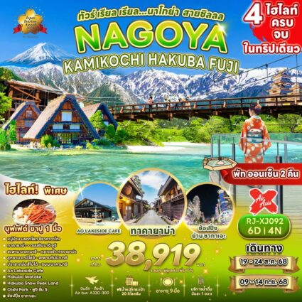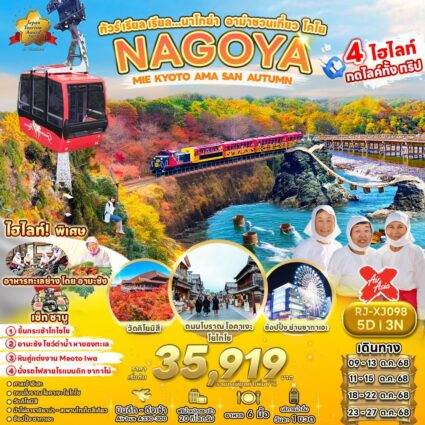 ทัวร์ เรียล เรียล นาโกย่า อาม่าชวนเที่ยว โคโย NAGOYA MIE KYOTO AMA SAN AUTUMN ไฮไลท์!! พิเศษ อาหารทะเลย่าง โดยอามะซํง เซ็ทชาบู ราคาเริ่มต้น 35,919 บาทRead more!