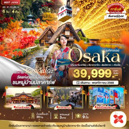 ทัวร์ เรียล เรียล โอซาก้า ส้มก็มา แดงก็โดน เหลืองก็แซ่บ OSAKA 7 จุด ฉุดไม่อยู่ ดูใบไม้เปลี่ยนสี เจดีย์ ยาซากะ หุบเขาโครังเค สะพานโทเก็ตสึเคียว ราคาเริRead more!