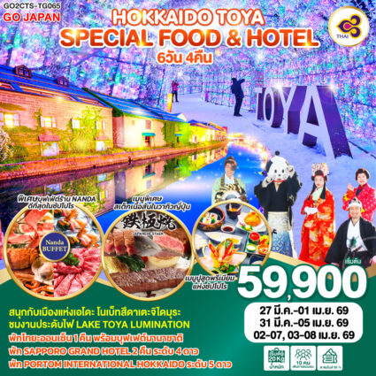 HOKKAIDO YU KIRORO SKKI ชม LAKE TOYA LAUMINATION พักโทยะออนเซ็น 1 คืน พักซัปโปโร 2 คืน ตลาดปลาโจไก สัมผัสน้ำแร่ธรรมชาติ ณ สวนฟูกิดาชิ Mt.Usa Terrace โRead more!