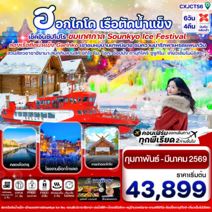 ฮอกไกโด เรือตัดน้ำแข็ง เช็คอินซัปโปโร ชมเทศกาล Sounkyo Ice Festival ล่องเรือตัดน้ำแข็ง Garinko เข้าชมหมู่บ้านเทพนิยาย ชมความน่ารักพาเหรดแพนกวิน ช้อปปิRead more!