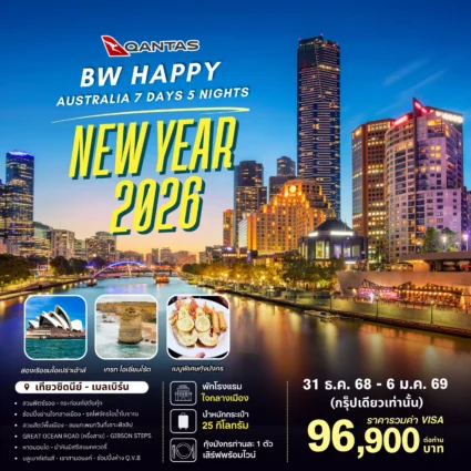 BW HAPPY AUSTRALIA 7 DAYS 5 NIGHTS NEW YEAR 2026 ㆍ สวนฟิตซ์รอย – กระท่อมกัปตันคุ้ก ㆍ ช้อปปิ้งย่านใจกลางเมือง – รถจักรไอน้ำโบราณ ㆍ สวนสัตว์Read more!