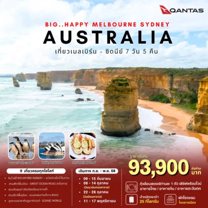 BW..POPULAR AUSTRALIA ซิดนีย์ เมลเบิร์น 7 วัน 4 คืน หาดบอนได – ม้าหินมิสซิสแม็คควอรี่ อุทยานแห่งชาติบลูเมาท์เท่นส์ GREAT OCEAN ROAD (ครึ่งสาย) รRead more!