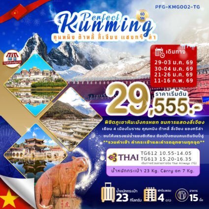 Penfeet Kunming คุนหมิง ต้าหลี่ ลี่เจียง แซงกรีล่า พิชิตภูเขาหิมะมังกรหยก ชมการแสดงลี่เจียง เยือน 4 เมืองโบราณ คุณหมิง ต้าหลี่ ลี่เจียง แชงกรีล่า ช้อปRead more!