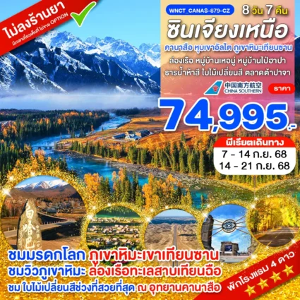 WEST XINJIANG ดินแดนมนต์เสน่ย์แห่งโลกเทพนิยาย…ธรรมชาติที่ยังบริสุทธิ์ ชมวิวระหว่างทาง เมืองขุยถุน อุรุมซี ตลาดต้าปาจา ราคาเริ่มต้น 61,999 บาท CoRead more!