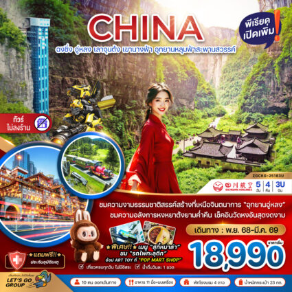 China 2 มหานคร ฉงชิ่ง เฉิงตู อู่หลง หลุมฟ้าสะพานสวรรค์ พพักอุทยานหุบเขาสี่ดรุณี 1 คืน ครั้งเดียวเที่ยวค้ม 2 มหานคร นั่งรถไฟความเร็วสูงสุดล้ำ ชมอุทยานเRead more!
