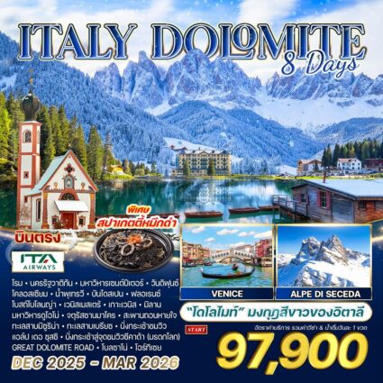 ITALY DOLOMITE โรม นครรัฐวาติกัน มหาวิหารเซนต์ปีเตอร์ วันดิฟุนซ์ โคลอสเซ๊ยม น้ำพุเทรวี เวนิสเมสเตร้ เกาะเวนิส มิลาน ทะเลสาบเบรียซ นั่งกระเช้าชมวิว นั่Read more!