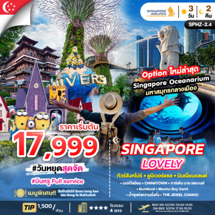 Singapore LOVEELY ทัวร์สิงคโปร์ ยูนิเวอร์แซล มินเนี่ยนแลนด์ Option ใหม่ล่าสุด Singapore Oceanarium มหาสมุทรกลางเมือง เมอร์ไลอ้อน CHINATOWNN การ์เด้น บRead more!