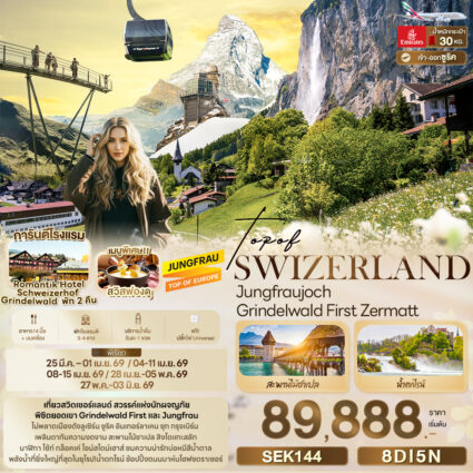 Top of SWIZERLAND Jungfraujoch Grindelwald First Zermatt 8 วัน 5 คืน เที่ยวสวิตเซอร์แลนด์ สวรรรค์แห่งนักผจญภัย พิชิตยอดเขา Grindelwald First และ JungfRead more!