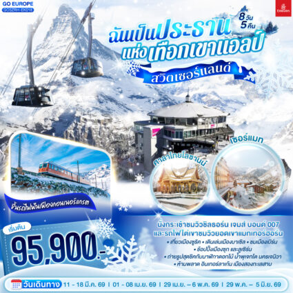 Winter Wonderland SWITZERLAND JUNGFRAUJOCH SCHILTHORN ZERMATT 8 วัน 5 คืน เที่ยวสวิตเซอร์แลนด์เต็มอิ่ม ชมเมืองดัง ลูเซิร์น ซูริค อินเทอร์ลาเคน ซุก และRead more!